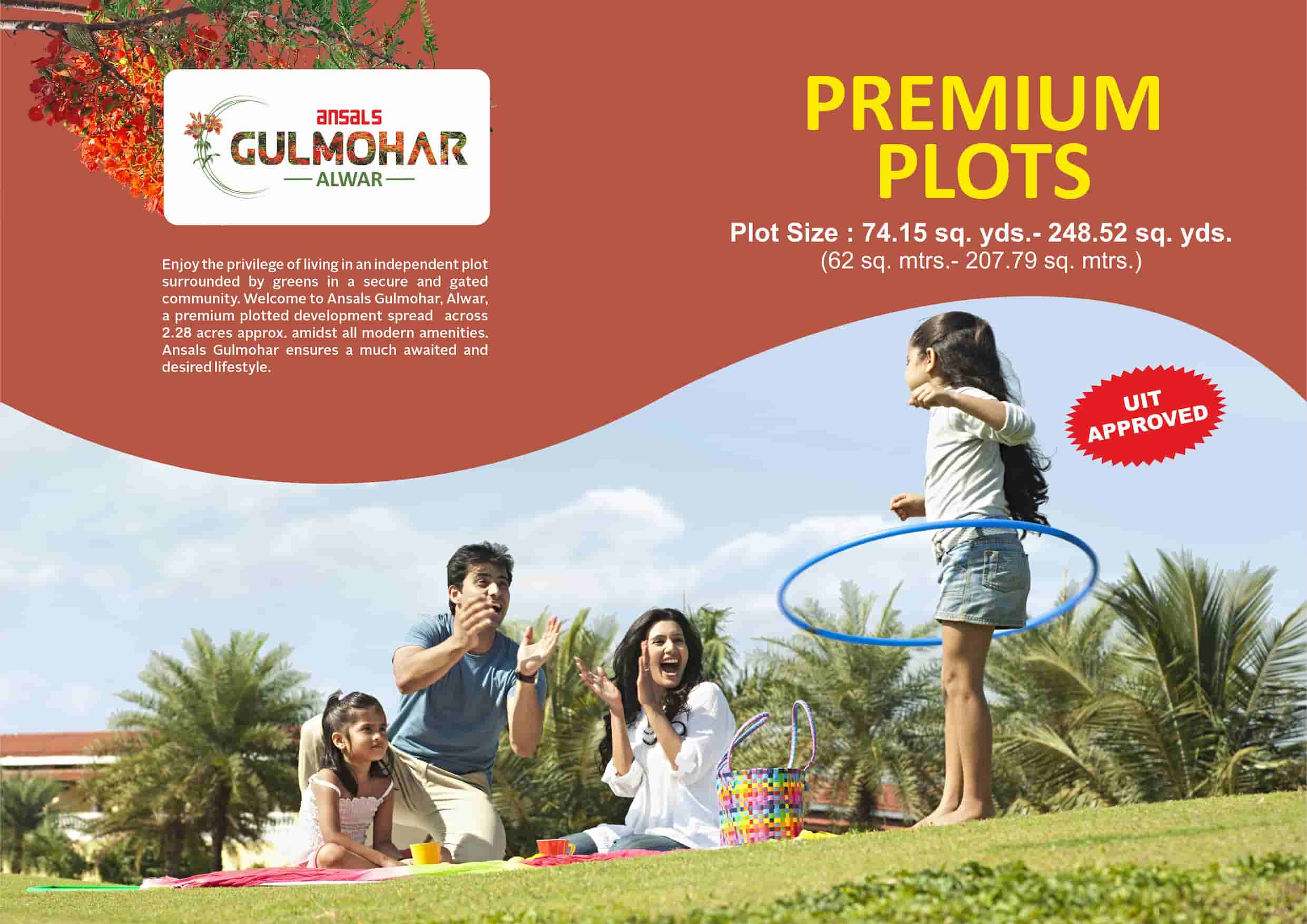 Enjoy the privilege of living in an independent plot surrounded by greens in a secure and gated community. Welcome to Ansals Gulmohar, Alwar, a premium plotted development spread across 2.28 acres approx. amidst all modern amenities. Ansals Gulmohar ensures a much awaited and desired lifestyle.
