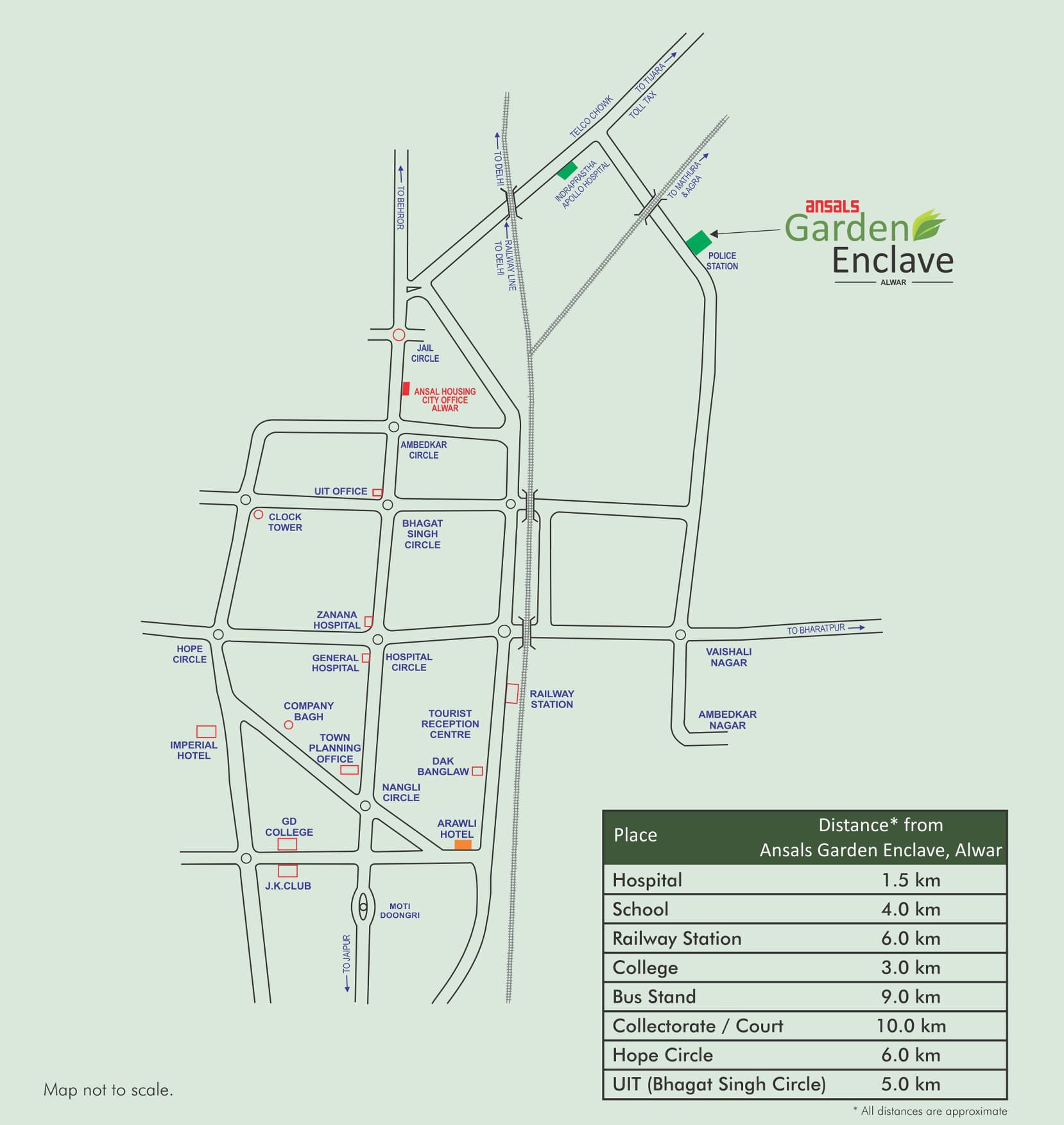 Ansals Garden Enclave spans across 4.02 Acres, embracing a fully integrated intelligent green community, strategically positioned in the serene embrace of nature within Alwar, Rajasthan. This township is designed with features like RCC Pavered Roads, LED Street Light, Children Play Area Open Gym, adjoining fully functional Ansal Town, Alwar & other amenities.